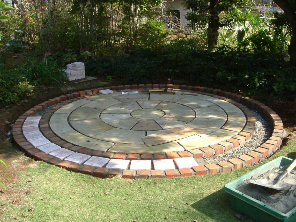 レンガの間にスクウェア平板を並べていきます。