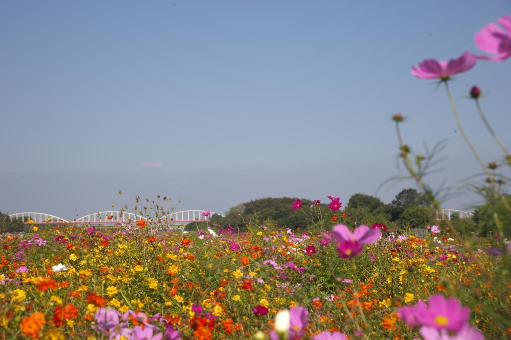 色とりどりのコスモス畑素敵ですね~コスモスはやっぱりた~くさん咲いている姿がいいですね~
