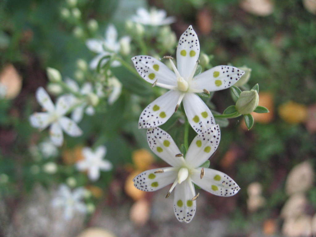可憐な花ですね。よく見ると子供がいたずらしたような模様が・・・私の庭にも来ておしいです。