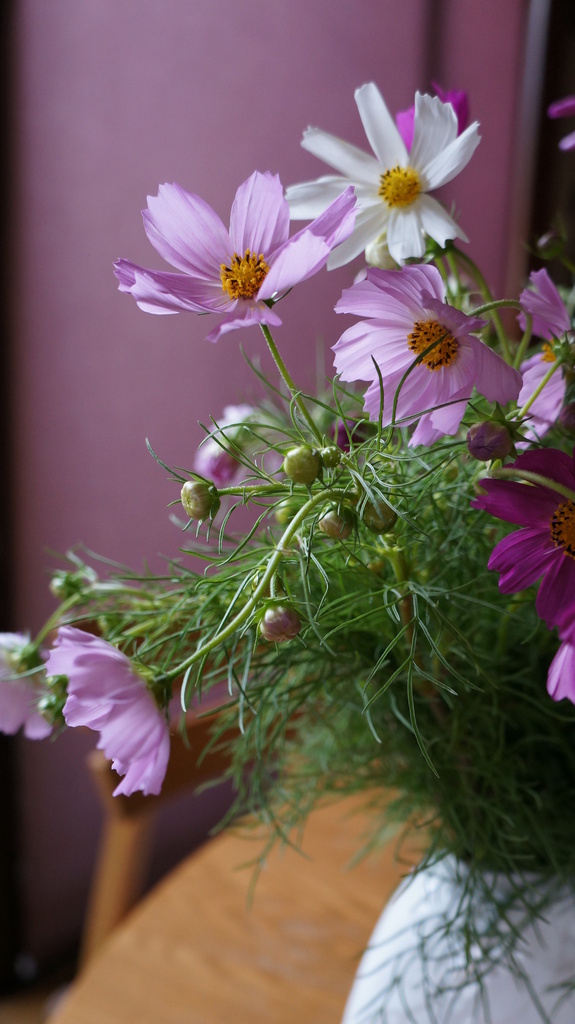 羨ましい~^^コスモスも素敵なのですが、後ろのパープルに壁に素敵すぎで釘づけです*^^*素敵なお宅なんだろうな~妄想中^^