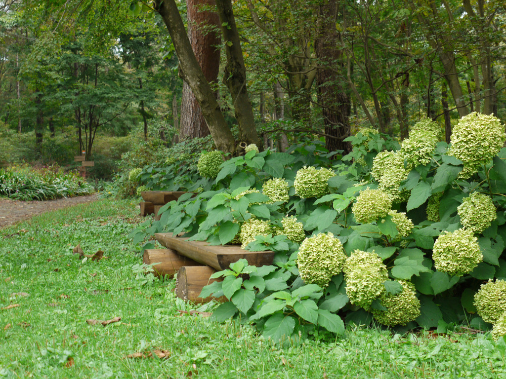 真っ白のアナベルもいいですが、緑の大玉が自然と調和していますね。