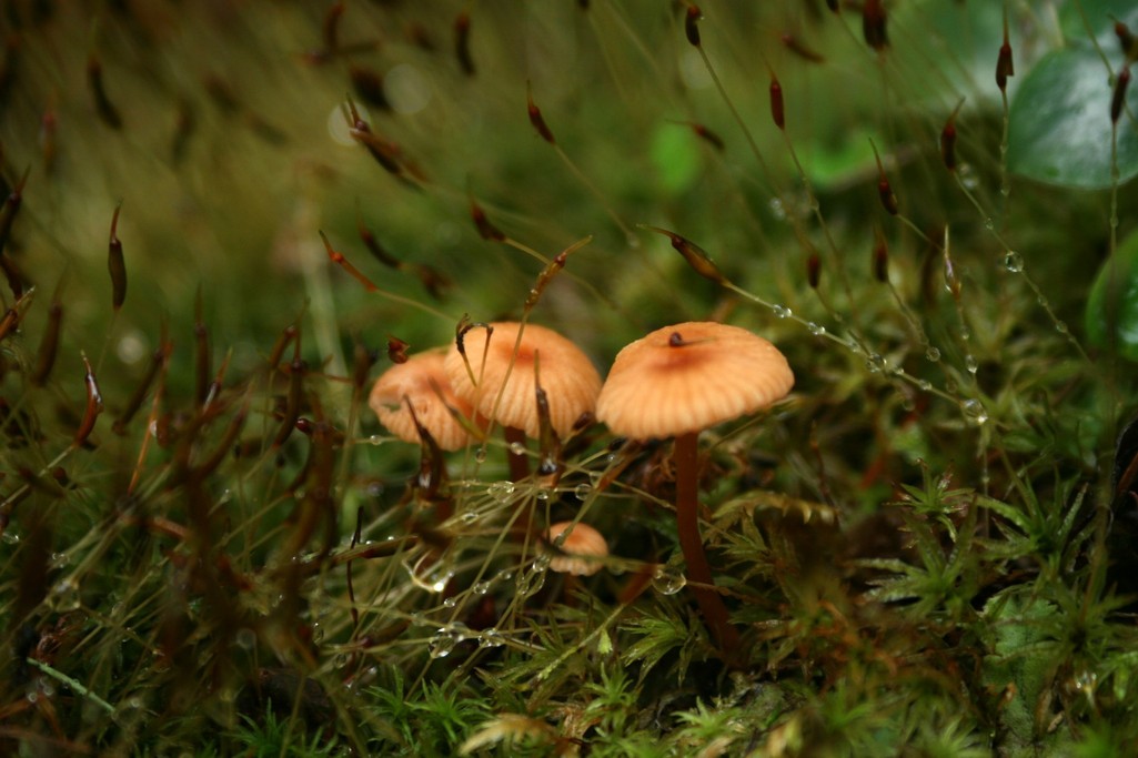 苔の種の間に顔を出している可愛いキノコの兄弟。