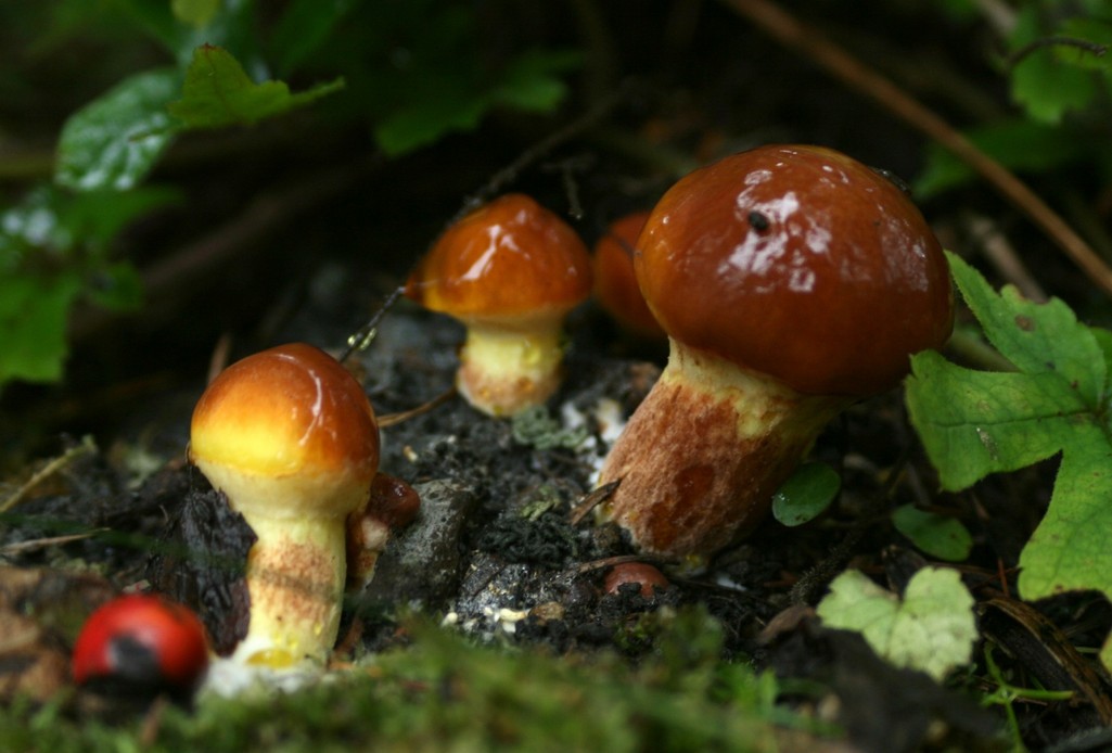 多分こちらでリコボウと呼ばれている食べられるキノコだと思います。これはナメコぐらいの大きさですが、大きくなると直径10cm位の傘になります。