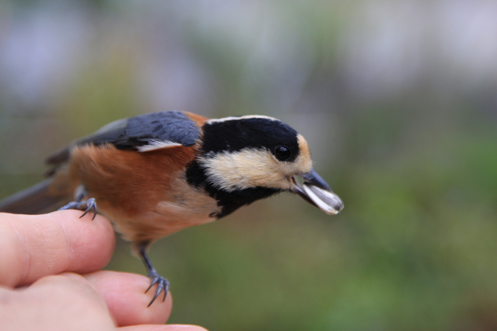 ヤマガラちゃんのアップですね。手に乗るなんて夢のようです。。