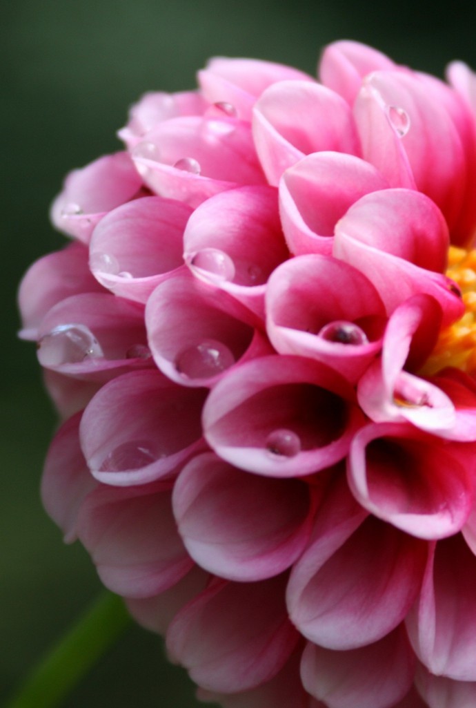 昨夜の雨の水滴がポンポンダリアの一つ一つの花弁の中で水玉になっていました。