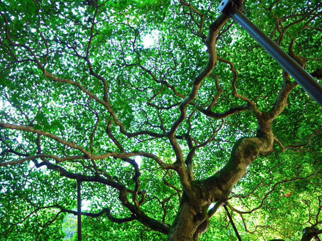 枝に補助器具がつけられ、随分大きく伸びやかに成長した木なんですね。青紅葉でこんなに美しいのですから、紅葉もさぞかし美しいことでしょう(*^^*)