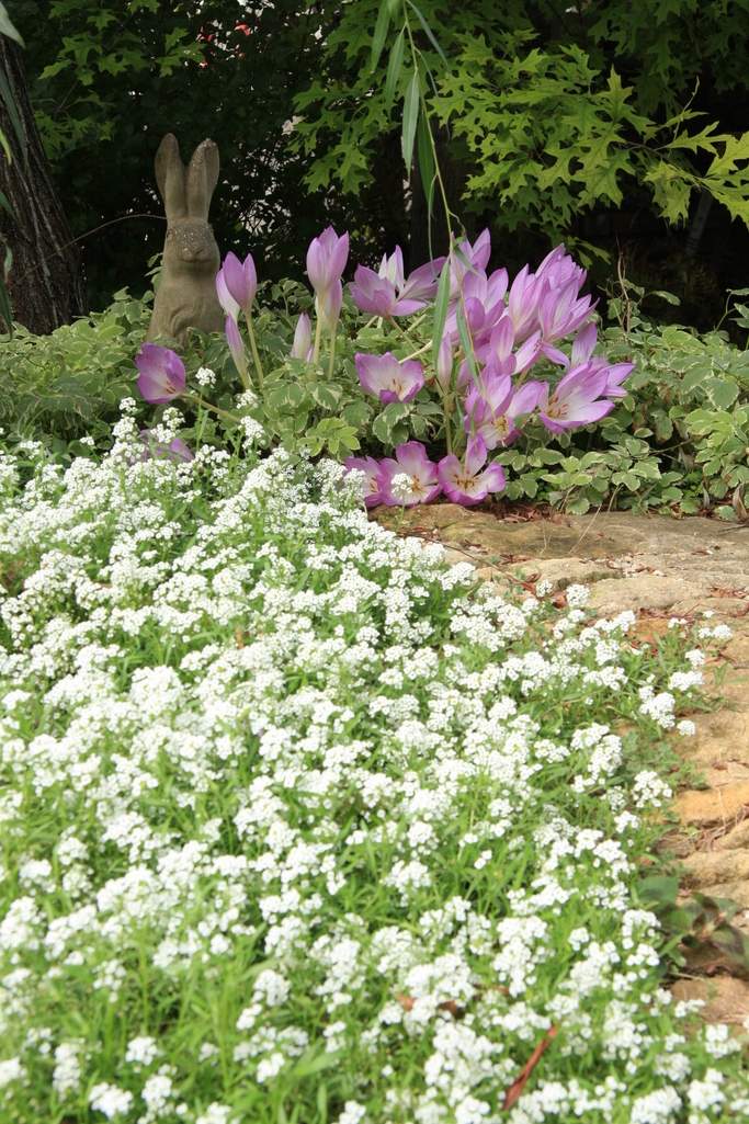 うさちゃんとアリッサムとコルチカム、とっても可愛い取り合わせですね(*^^*) 花に誘われて、そのうち本物も現れそうですね~^^