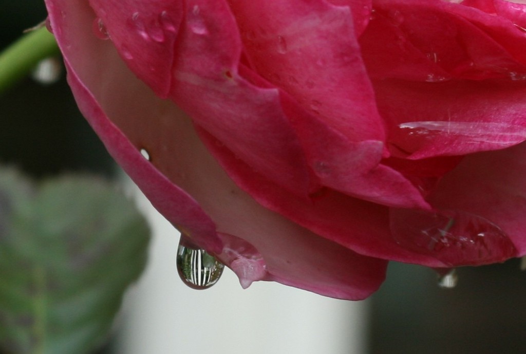 雨上がりの朝ピエールさんについた滴に、サンルームのガラス戸の白い枠がきれいに映りこんでいました。