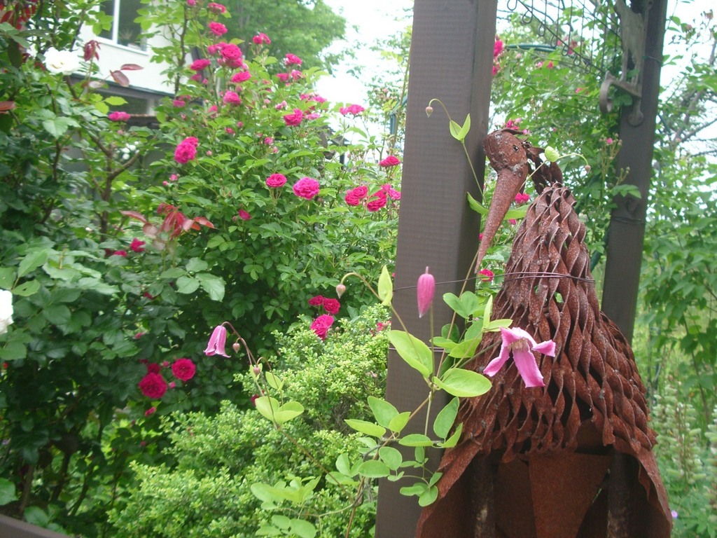 鳥にクレマチスがお出迎えしています。