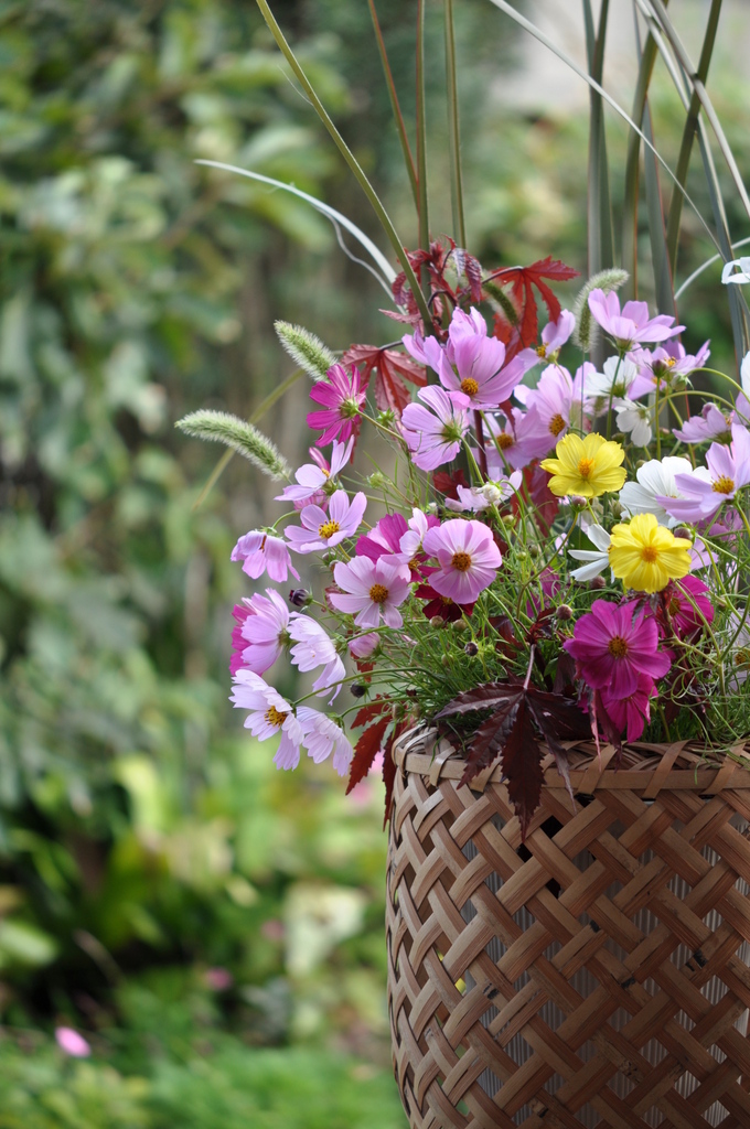 コスモスにピッタリの籠ですね。