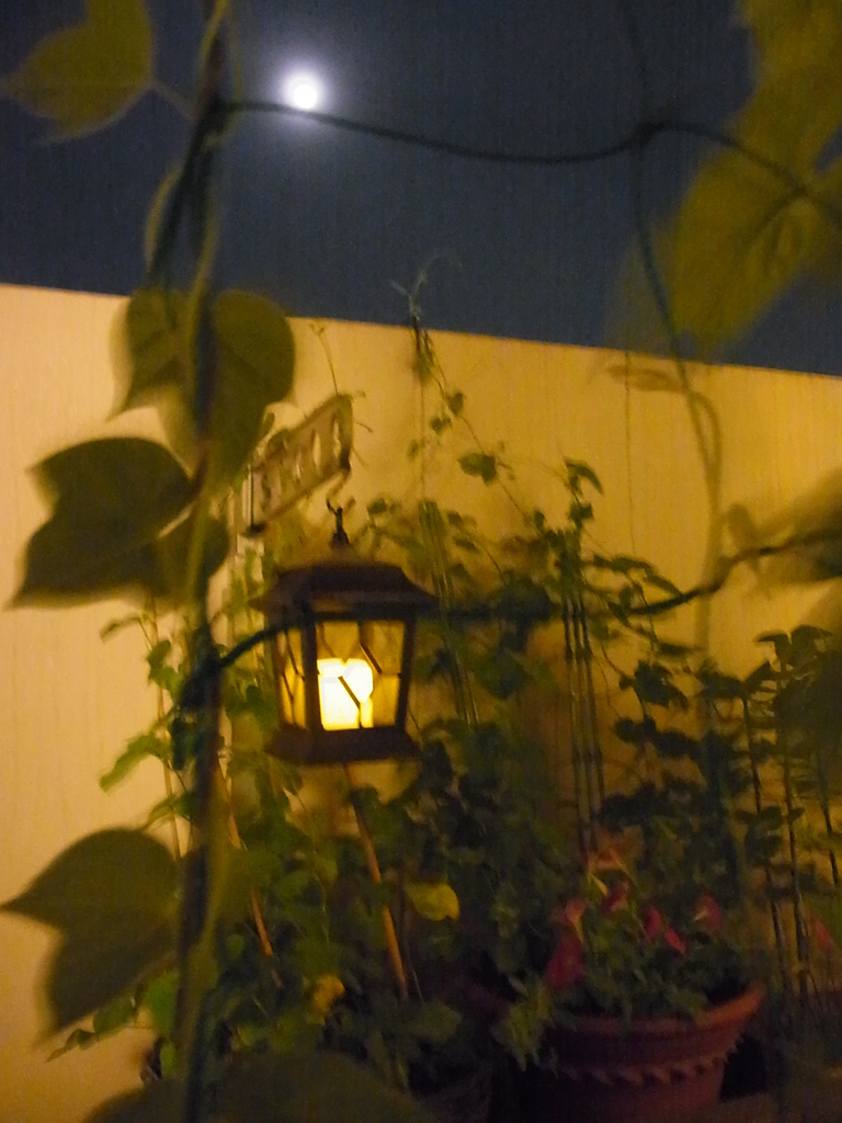 べランダで朝顔カーテンを作った。朝顔カーテンの裏側から見た夜空に月が出ていた。