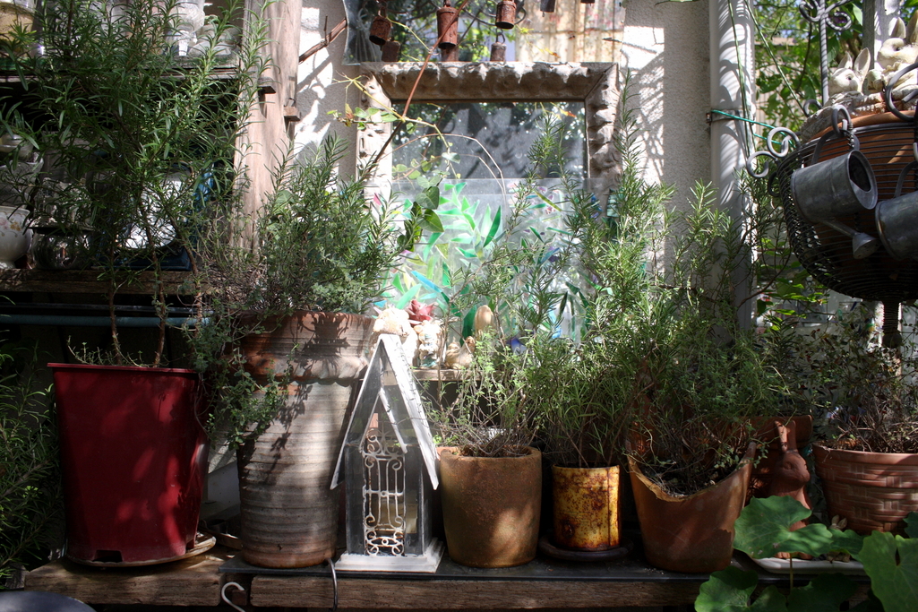 後ろに鏡が置いてあります。無造作に集められたようですが友達の感性が良く現れているコーナー。