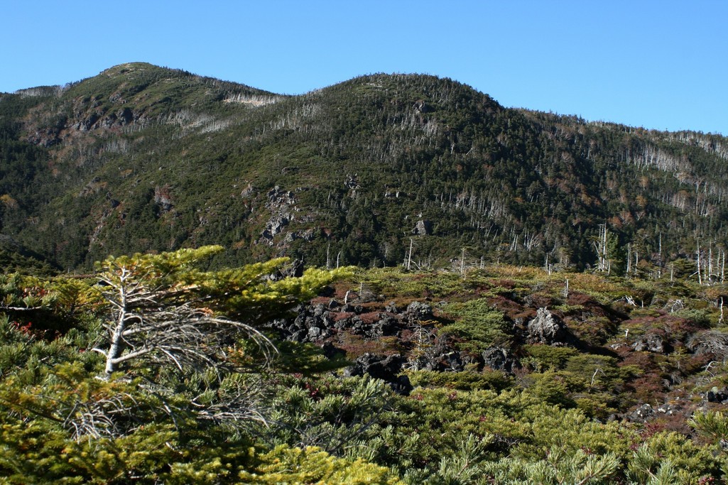 溶岩の間にはハイマツが厳しい環境に適応していました。