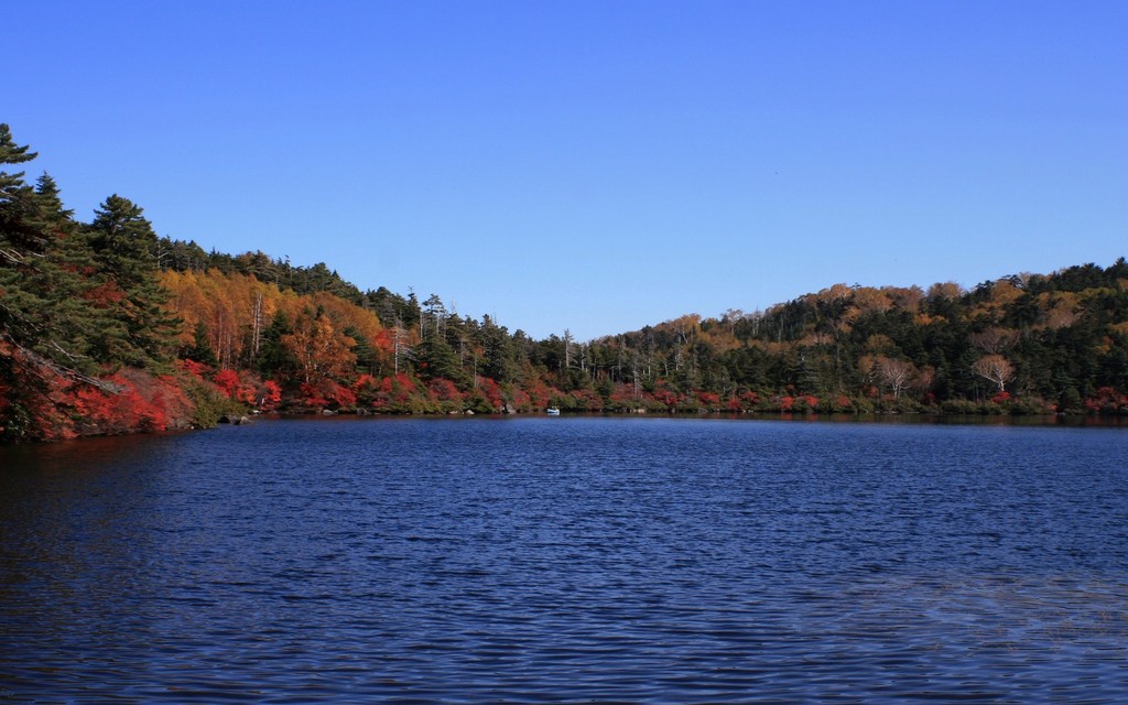 快晴の空の青さが湖面に映り、えもいわれぬ美しさに圧倒されました。