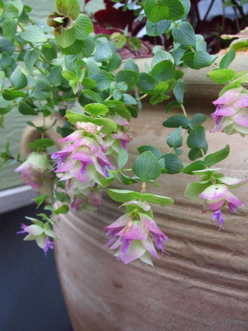 オレガノの花がベージュ色の植木鉢とよく合ってますね。