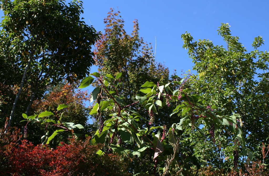 これは洋種ヤマゴボウ。子供の頃は、この真っ黒な実は青インクの原料だと思っていました。