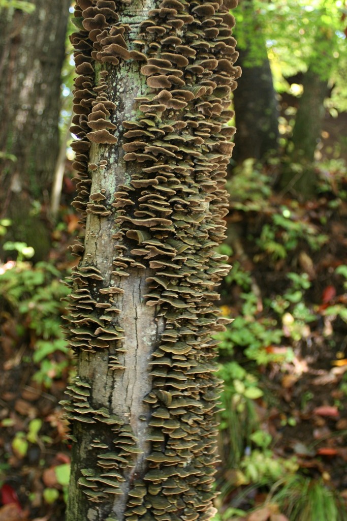 サンボの途中でこんな木を見つけました。小さなサルノコシカケの様なキノコがびっしりとついています。