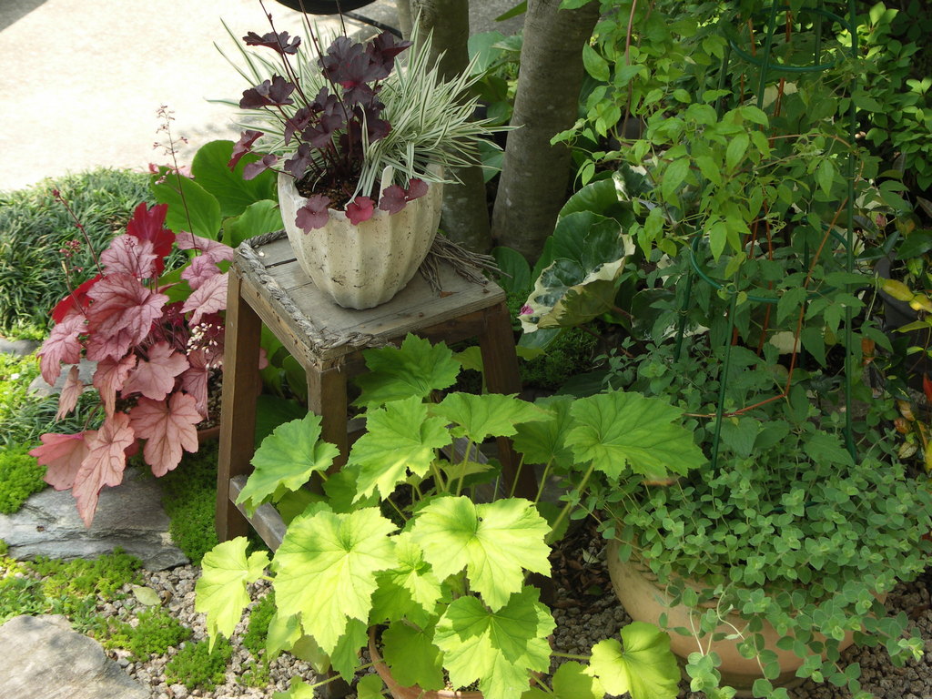 ヒューケラは寒さにも強く良い葉物です。バーバスカムさんのように、2色を接近させて植えると美しいですね。