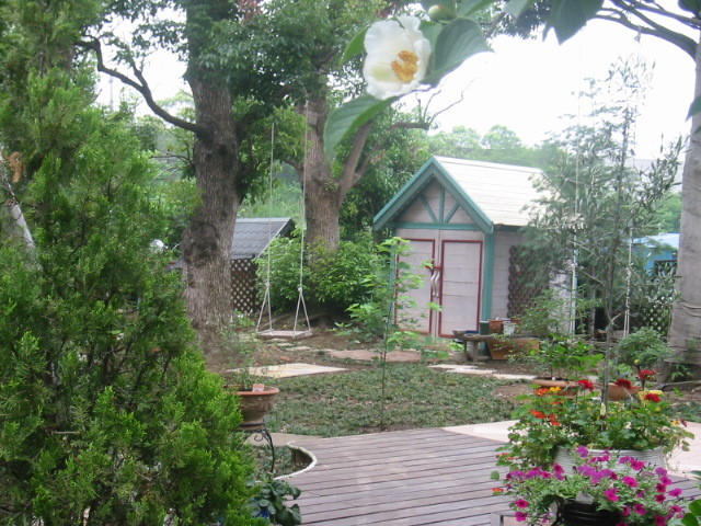 とてもかわいい色のガーデンシェッドですね。ご自分でペイントされたのですか?