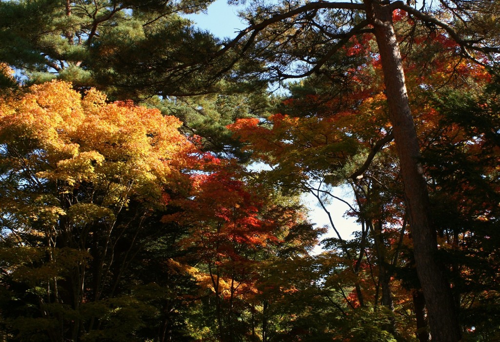 坂道を息を切らしながら登ってゆくと、このきれいな紅葉が迎えてくれます。