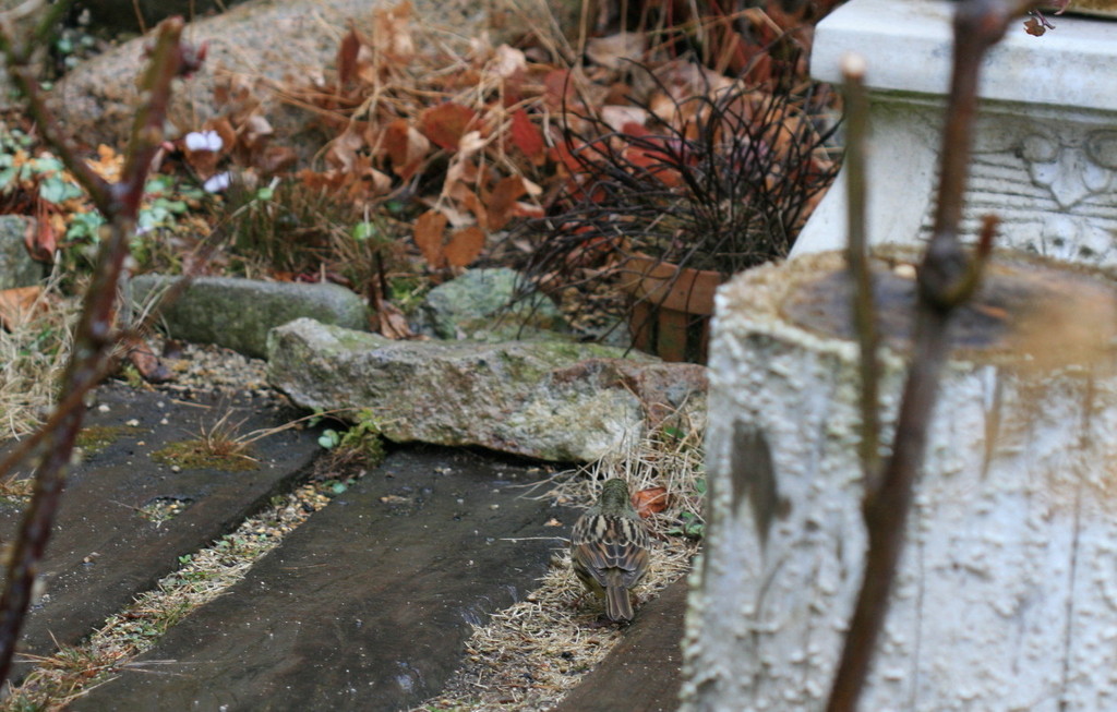 クロジではないでしょうか。(後ろ姿だから自信はないのですが・・)クロジも個体差があって若鳥は色が薄く、メスは地味です。ピンボケですが昨日の写真アップしました。今度しっかりうしろ姿も撮っときますね。