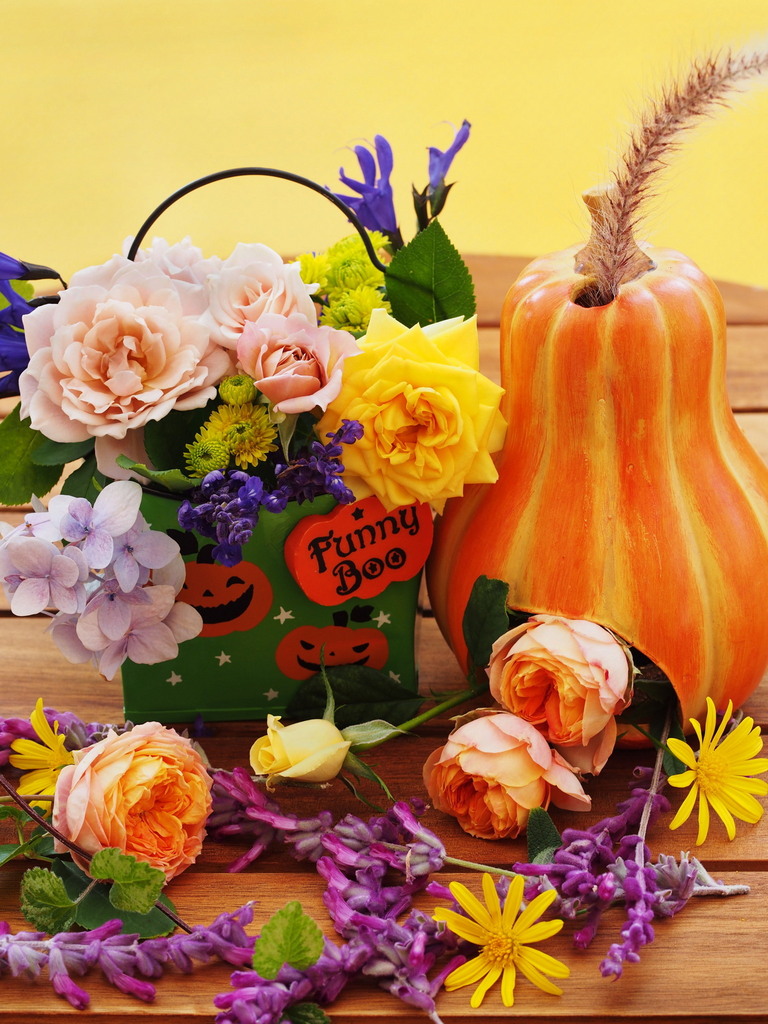 かわいい!!季節を感じるアレンジいいですね♪娘が学校でパーティがあるようで変な格好?!準備してました^^