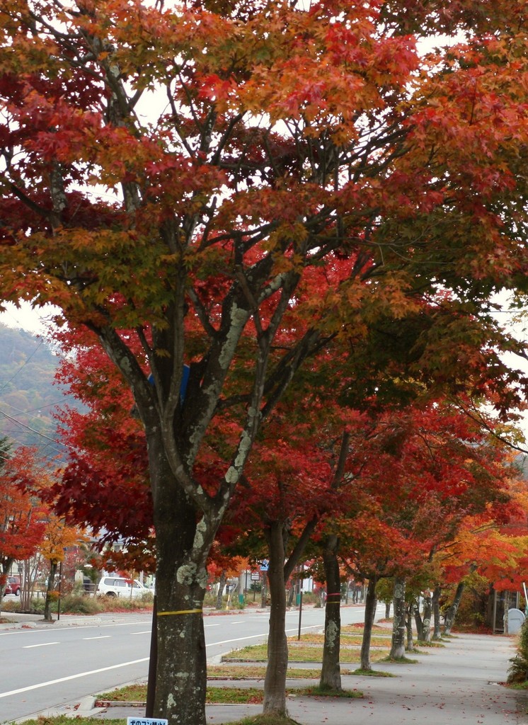 こんな並木道、いいなぁ~。素敵です♡ この間、祖父の家のもみじをみたら、まだらのまま葉先が茶色に枯れてました。やはりこのへんでは美しい紅葉は無理~^^;