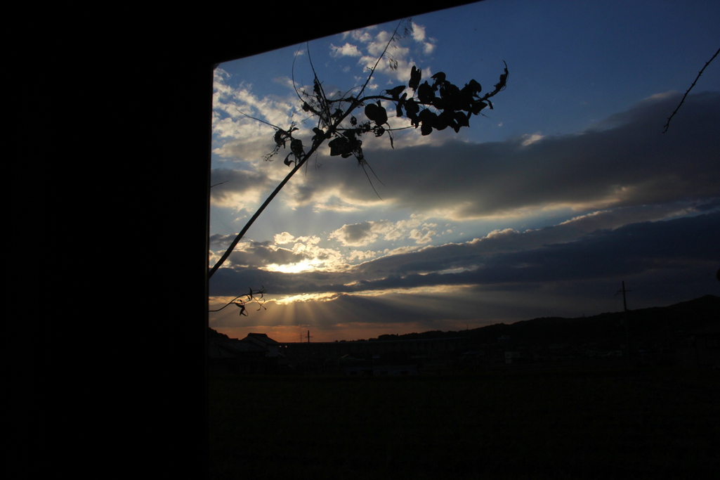 ?赤ちゃんのお部屋には、3つの窓が並んでいます。透明の窓は、大きなピクチャーウィンドゥ! 夕陽が、素晴らしく美しい日でした。