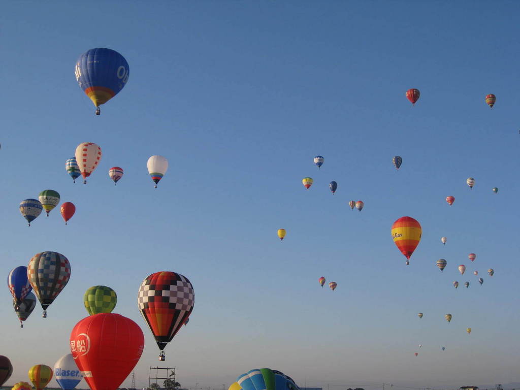 澄み切った秋空にカラフルな気球が素敵ですね。