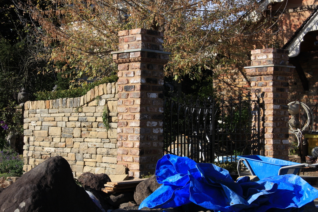 道より見る。門柱右の壁は材料の石がはいらないため、来年DIYか?