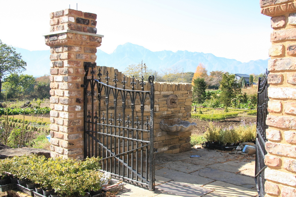 彼方に聳える南アルプスと門扉が調和してますね。