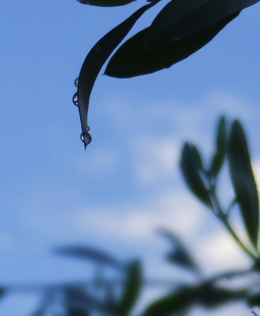 今にも落ちてきそうな雨だれを待ってしまいそうな写真ですね・・・