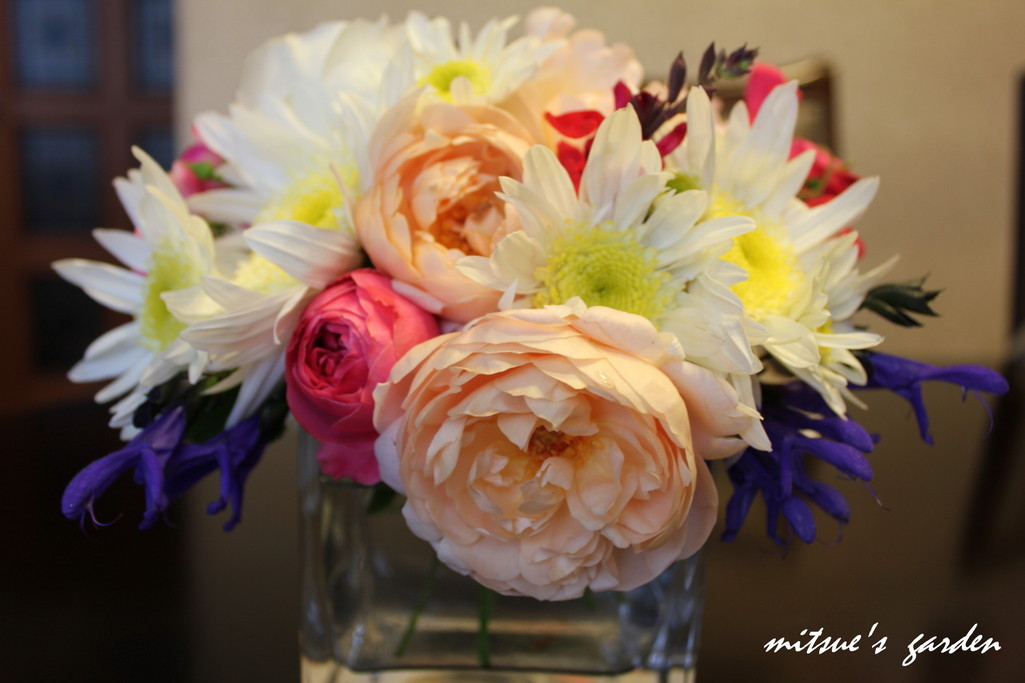 いやいや、そんなお恥ずかしい^^; アレンジって楽しいですよね!白いマーガレットのような菊が爽やかなアクセントになっていますね(*^^*)