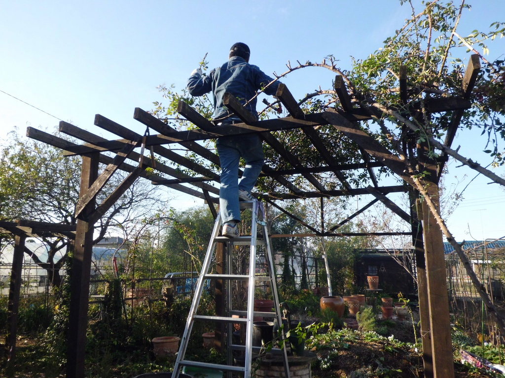うちもつるバラ暴れまくっています。綺麗な形のお庭はちょっとだけであとは暴れ馬だらけ。。。お写真見て剪定、誘引したくなりました。