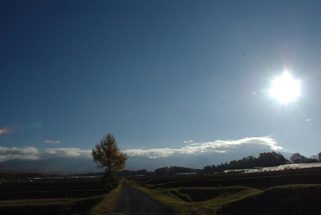 農道を下ると360度山が見渡せる場所から訪れる人を和ませる秋の田んぼから。