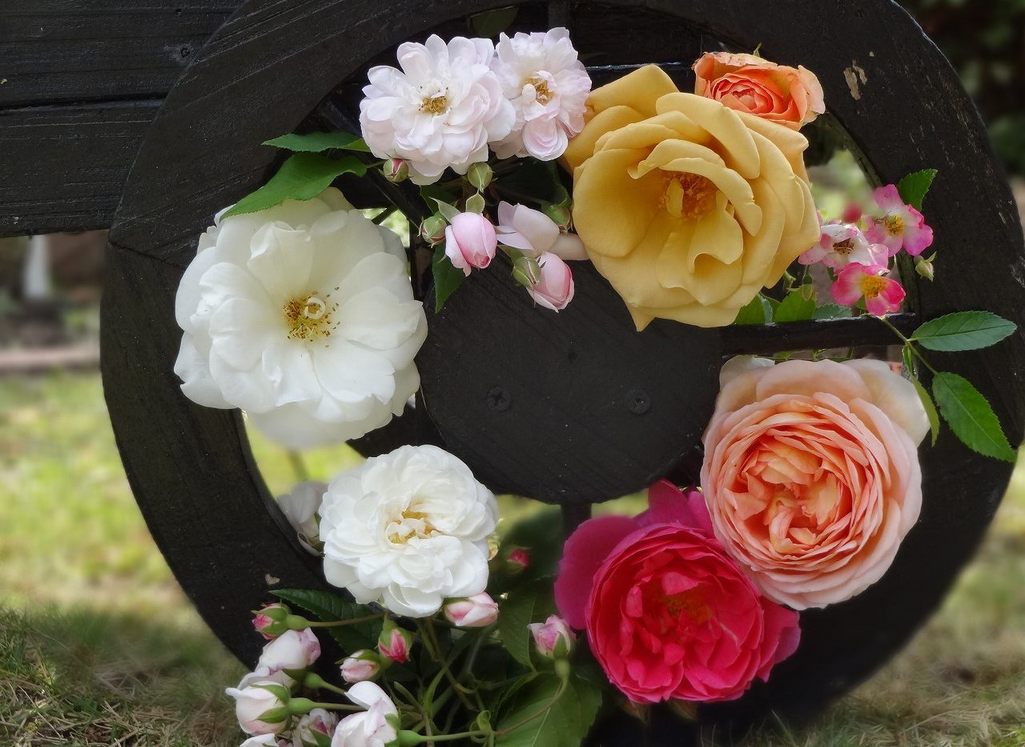 秋のお庭が色とりどりのばらの花車で一層華やかになりましたでしょう。