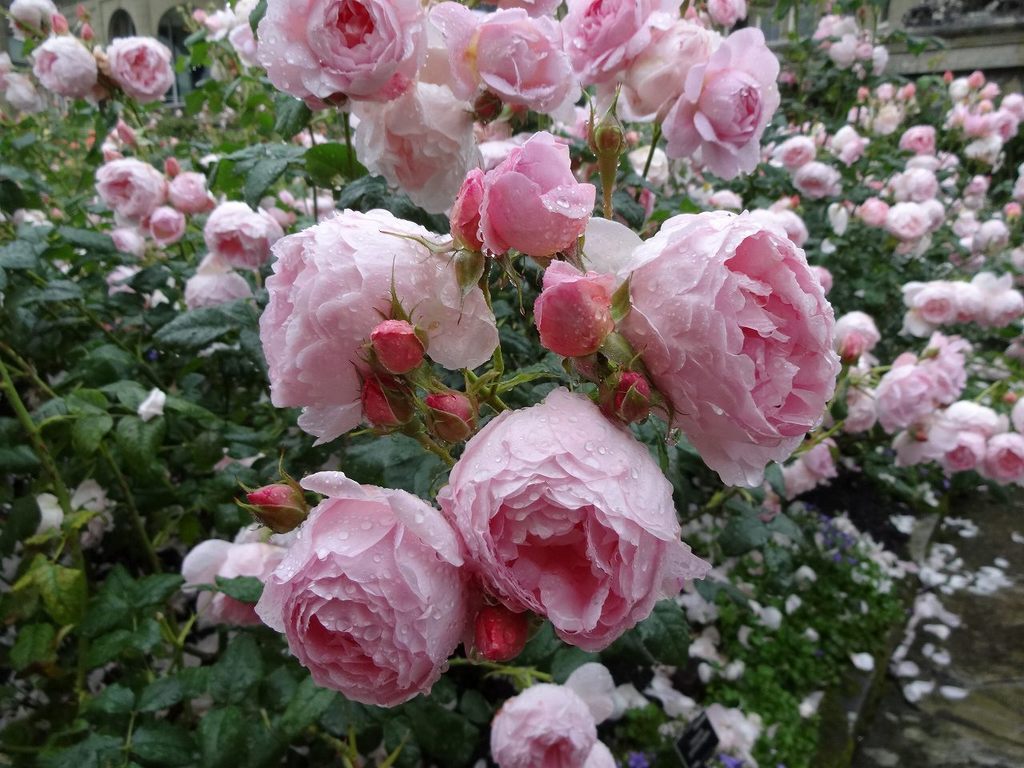 すごい花付きですね。なんのイングリッシュローズでしょうか?かわいいピンクですね。