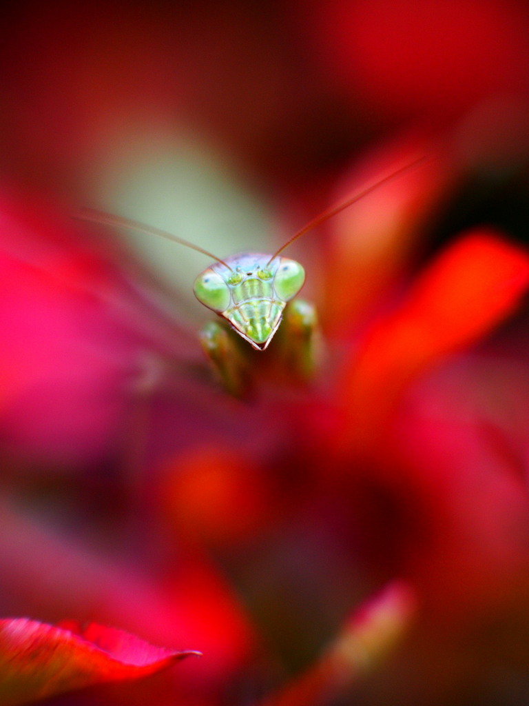 命の炎を燃やしているような真っ赤な背景・・・来春には彼女のこどもたちがまた闘士を見せてくれることでしょう。うちにもお腹の大きなカマさんがいましたが、どうなったかなぁ~。