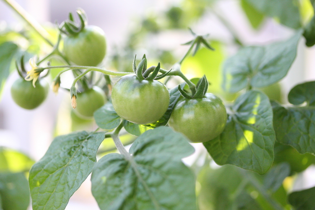 赤くないトマトが初々しいですね。