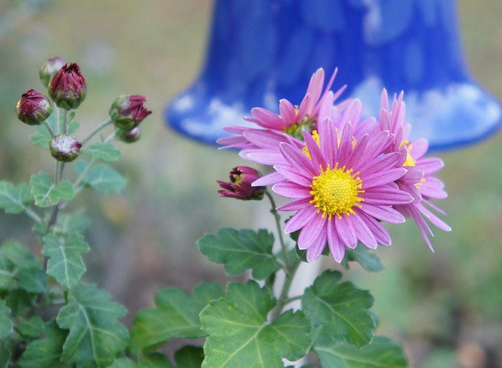 うちの庭にも小菊が見頃になっています^^ 陶器のキノコ可愛いです。