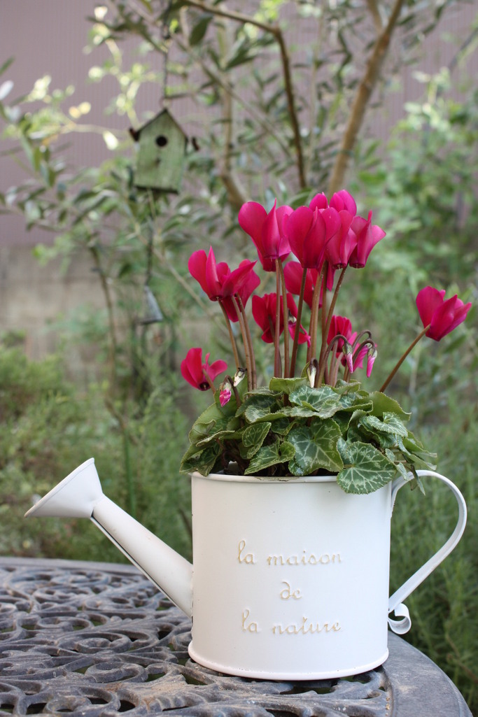 ジョウロに入れたシクラメン、可愛い演出ですね♡