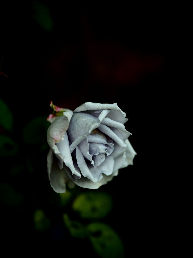 さん(^^) この薔薇は初夏の盛期の頃は真っ直ぐに上を向いて、堂々とした咲きっぷりです。 この時期はやはり元気がないのでしょうかね。うつむき加減に咲きますが、この色合いだけに存在感が有ります(^^)