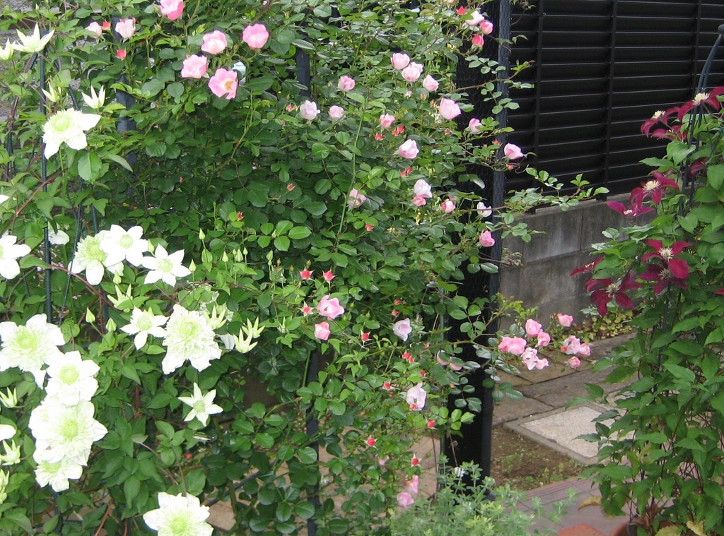 バラとクレマチスが共演するお庭・・・憧れです。