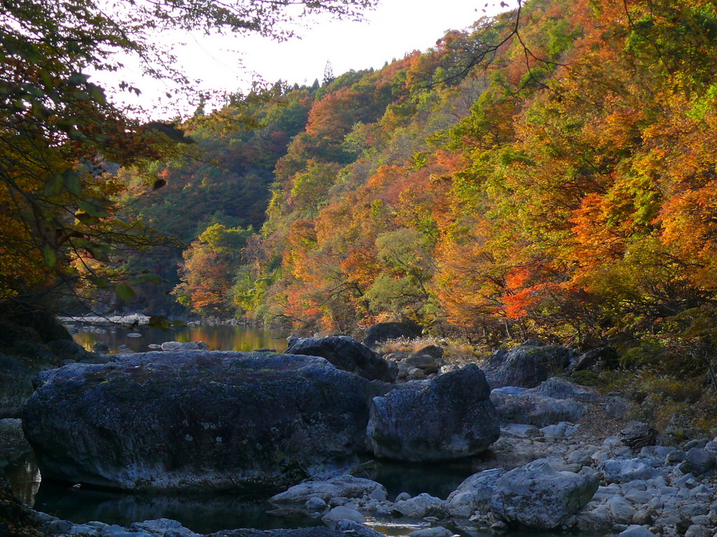 山の紅葉が済んだ水に映って静かに流れる様がよくわかります。