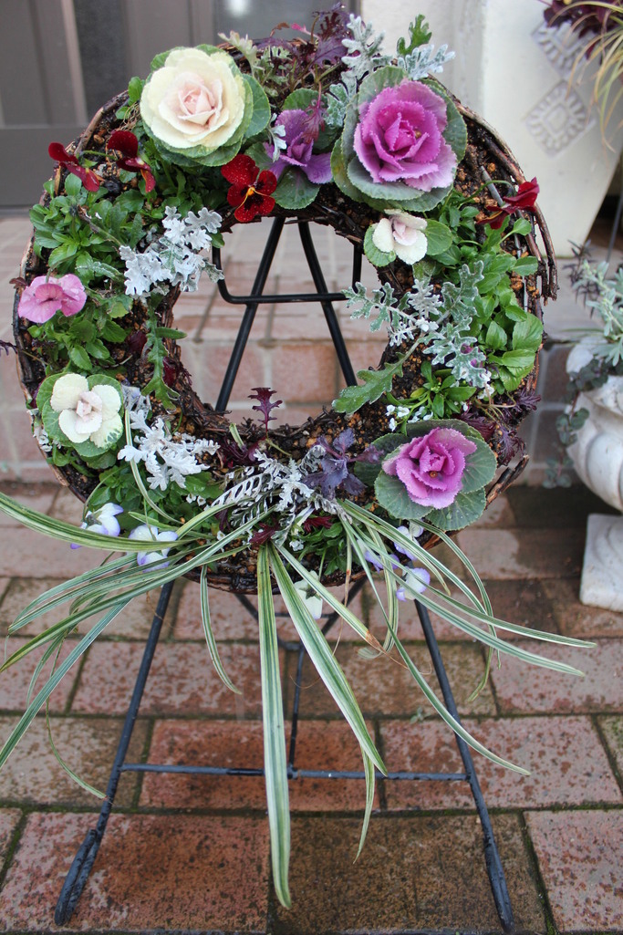 葉牡丹、こんなにお洒落なリースに出来るんですね。