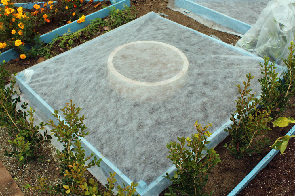 お隣さんに頂いた野菜の種をまきました。寒いので防寒しました。