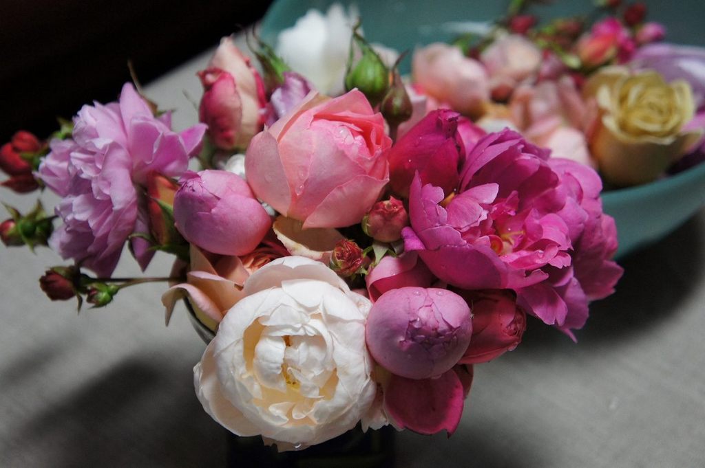 華やかなアレンジですね、開いた蕾だけでなく蕾も入れ、クリスマスのサンタもご満悦だと思います。