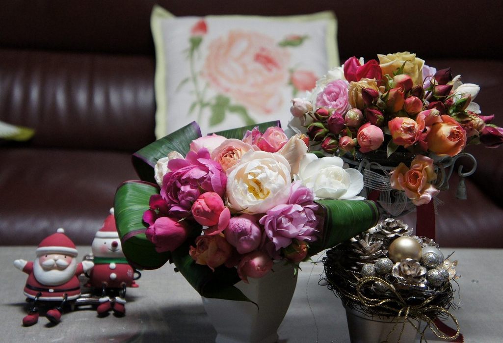 サンタさんもお花に囲まれて嬉しそうですね。