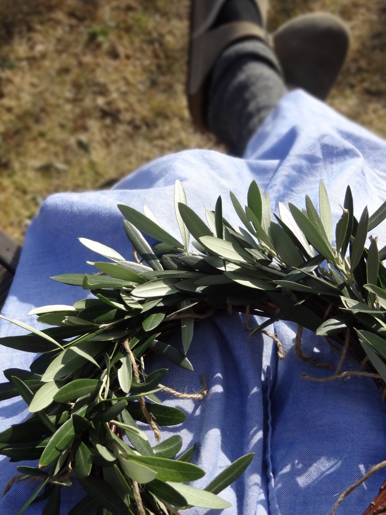 陽だまりでのこういう時間って、楽しいですね^^ オリーブのリース素敵です。