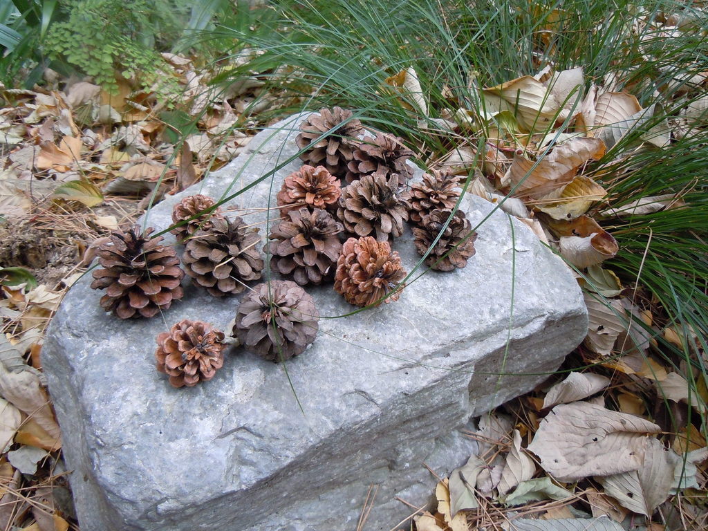 枯れ葉も松ぼっくりも、色とりどりで風情があるものです。